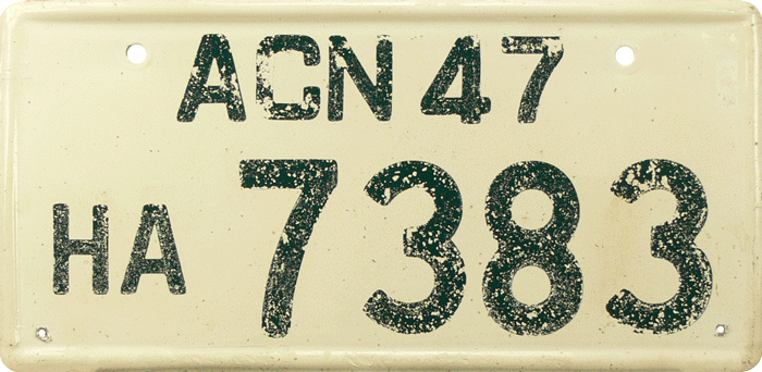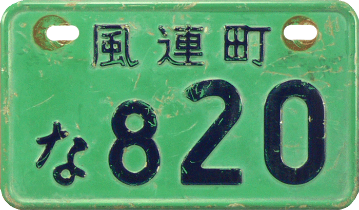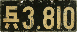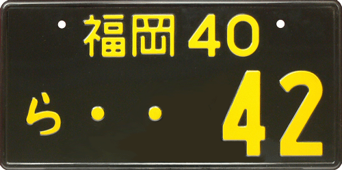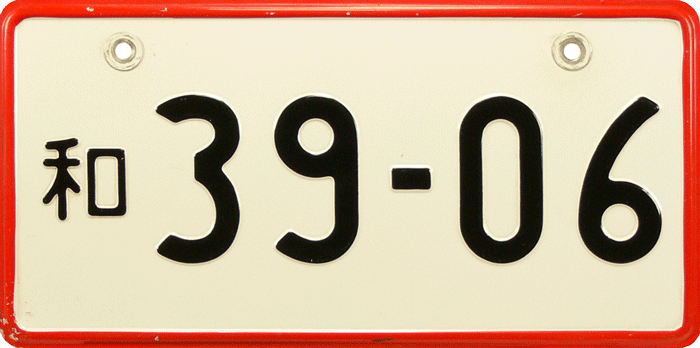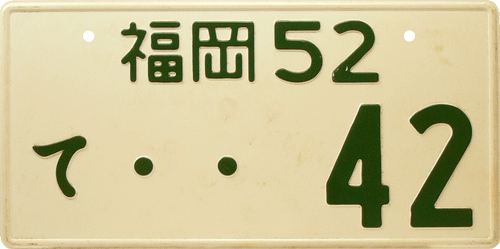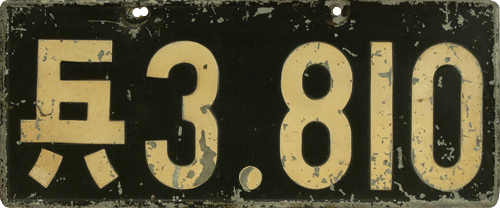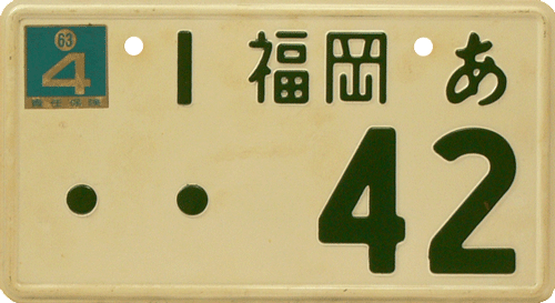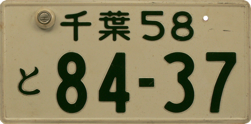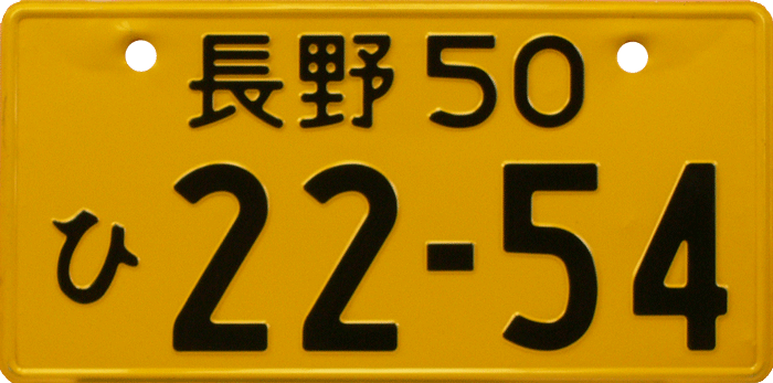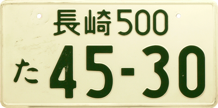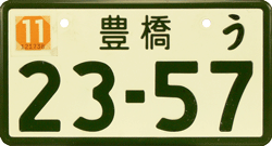 Out-of-Country plate / Used for Japanese cars, temporarily used outside of Japan. The plate is an exact translation with Western letters of the original Japanese car registration / ACN = Nagoya. |