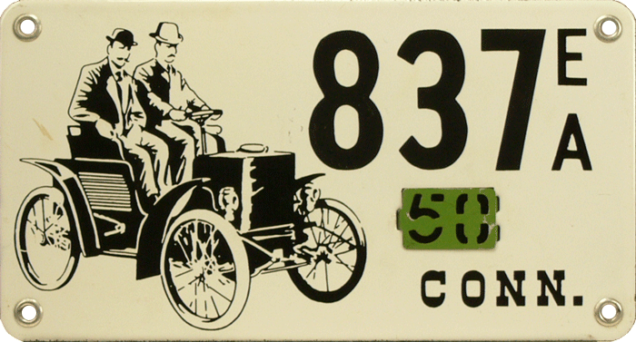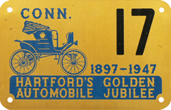 USA Connecticut 1947 Hartford Golden Automibile Jubilee Valid from 09-01 to 10-01 1947 Only 200 pairs were made, of which the first 20 were for presentation to VIP's only. This plate was not State-issued, but could be used for registration for this limited time.