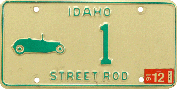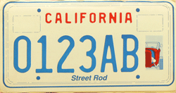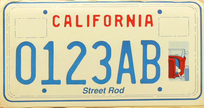 From June 1992 Street Rod Cardboard sample plate. Available from June 1992, but never issued because of no demand for these (the cut was at 7,500 orders). These cardboards were provided by the DMV when collectors asked for plates.