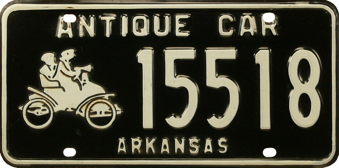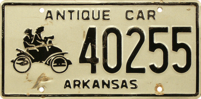 Antique Car This is an error-plate. At the bottom the state is misspelled 'ARKANSNS'
