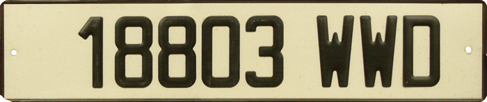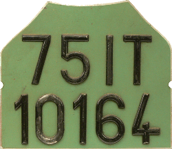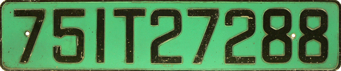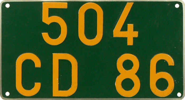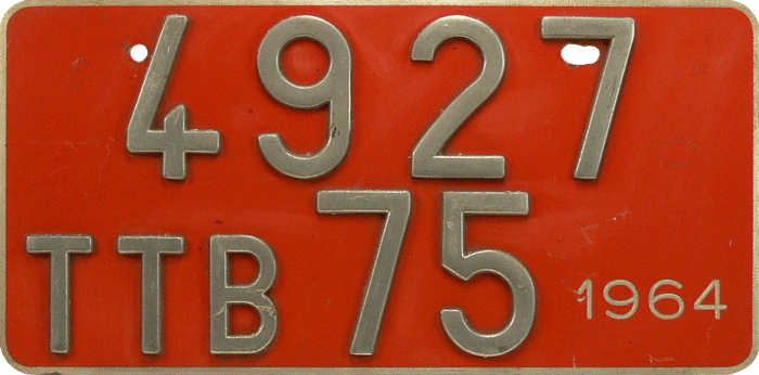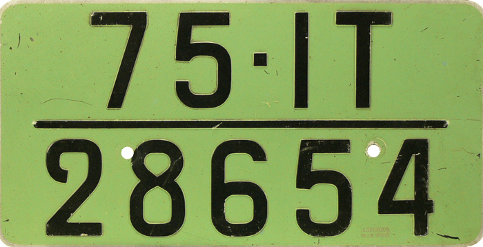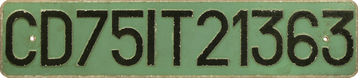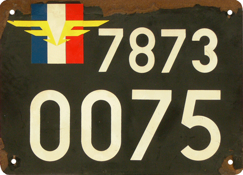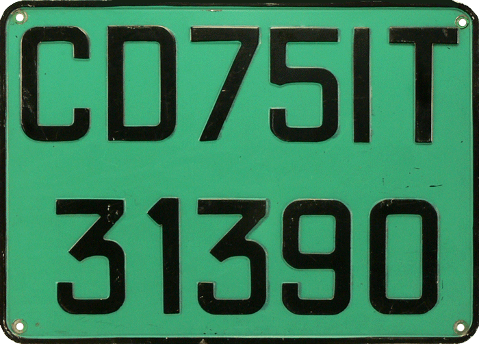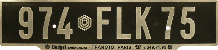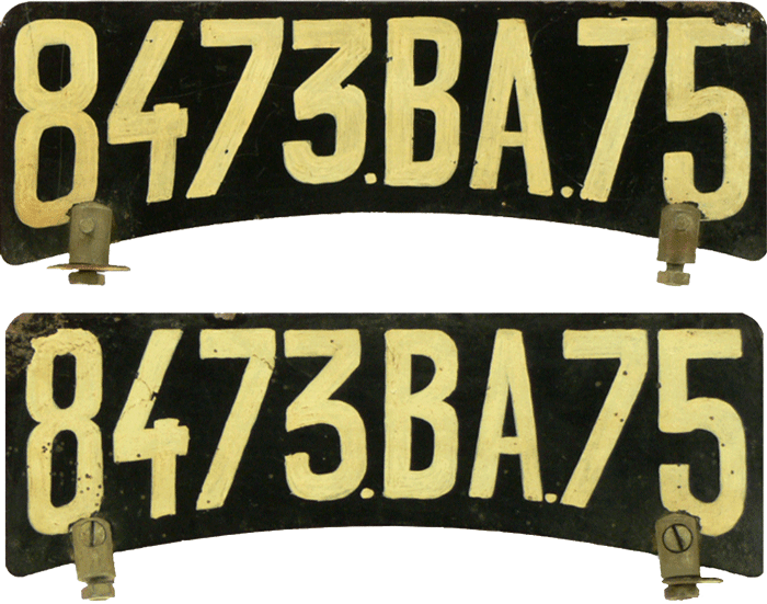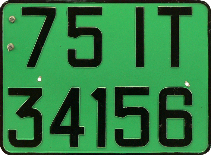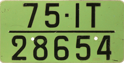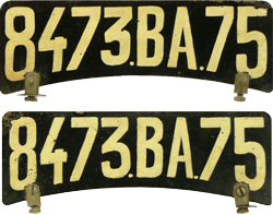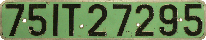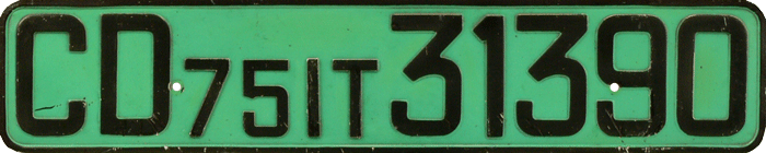 1964-1965 Diplomatic / 75 = Paris / Rear plate (The boltholes on the top left corner were meant for a CD oval, for vehicles belonging to the diplomatic corps) |