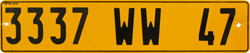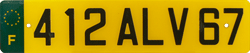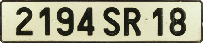 Unknown type / Front plate / Most likely a foreign registration in French style. Often used by foreign residents to avoid road taxes and penalties. After 2003 vehicles registered like this will be immobilized by the authorities. |
