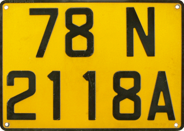 From 1992 Official N means that vehicle can be used nationally 78 = Province of Seine-et-Oise (Paris area) |