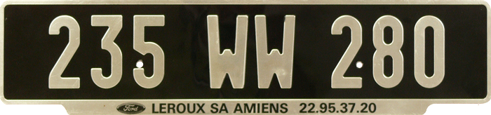 1964 With attached metal letters, and '1964' etched into the plate, which is quite unusual. Manufactured by Maillefaud in Paris. |