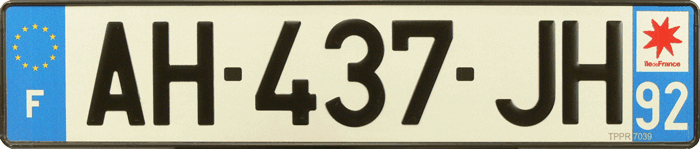 1993-1998 Dealer Export The "2" is followedby the Department Code: 75 = Paris Front plate |
