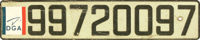 From 1991 Army / DGA = General Armaments Delegation 9972 is explained as follows: 9=Common Services / 97 is Year of registration i.e. 1997 / 2 = Small truck |