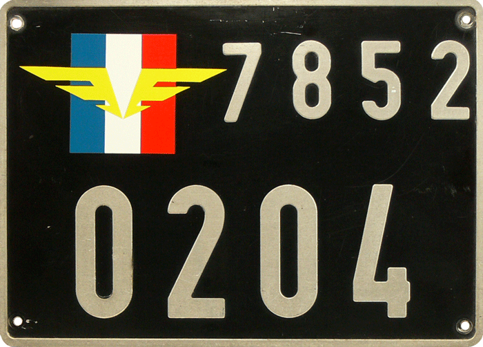 France From 1993 Army 6959 can be explained as follows: 6 = Army & Gendarmerie, 95 = 1995, 9 = motorcycle. |