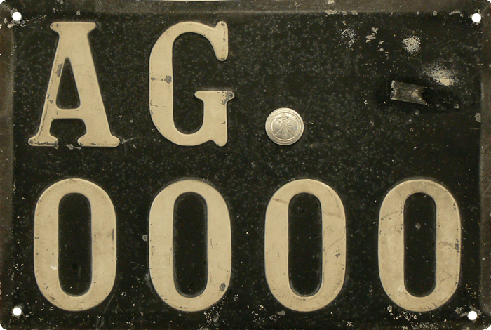 1928-1945 Passenger / Sample plate / AG=Agrigento / The seperator is the "fascio" symbol and was used beginning between 1928 and 1932 and lasting until the downfall of the fascist regime in the mid 1940's.