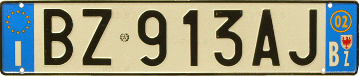 1959-1985 Agricultural Vehicle (tractor) BZ = Bolzano Province Plastic plate, in use from 1963.