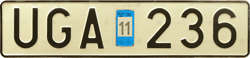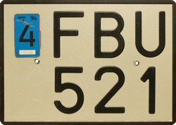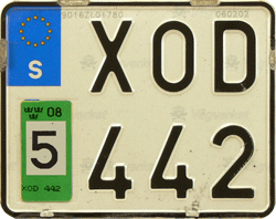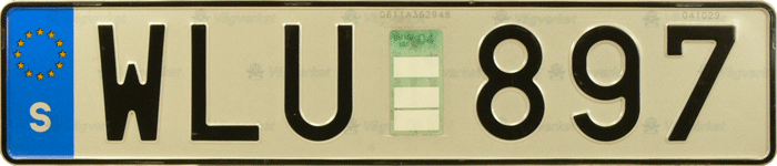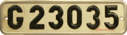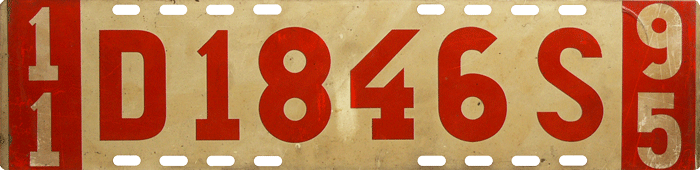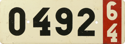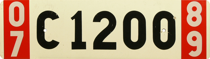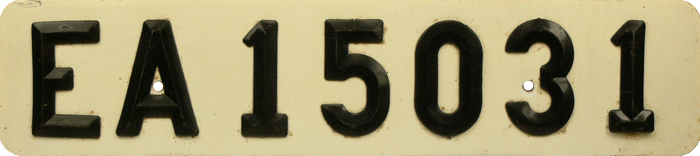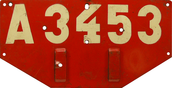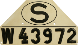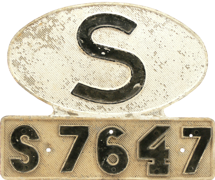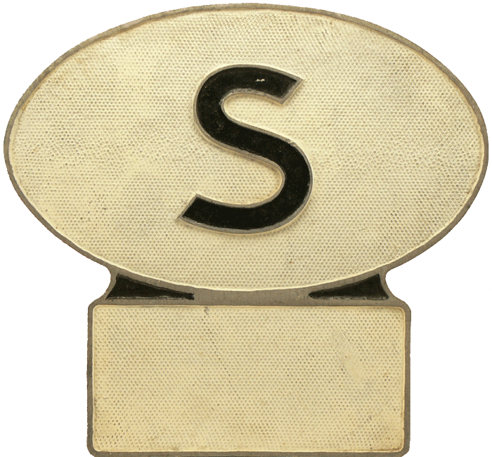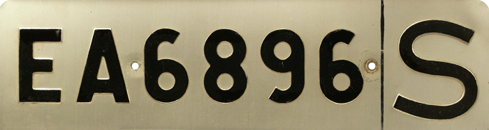 Till 1972 Cast alluminium. Early plate with incorporated S. This is an unofficial addition by the owners, but allowed as long as the plate itself conformed to the required specifications. |