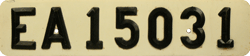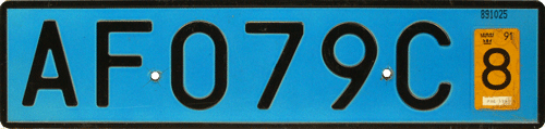 1988-2004 Passenger / Personalized / Perspex plate / Since 1988 personalized were allowed with 2 to 6 caharcters. This plate was issued in 1995 (see right top on the plate). |