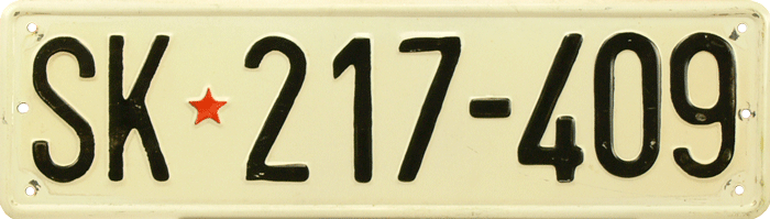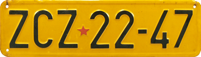 From 1990's Demonstration or test plate ZCZ = Zavod Crevina Zastava, meaning Red Zastava Factory
