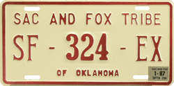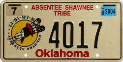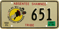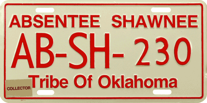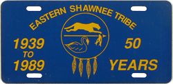 Eastern Shawnee Tribe / This plate is a kind of souvenir plate, that was intended to be issued eventually. However, it never was. (Thin metal plate)